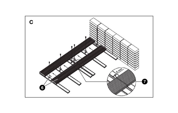 - Lägg regeln i underkonstruktionen med ett centrumavstånd på max 30 cm. Avståndet mellan regel och vägg ska vara minst 2 cm.