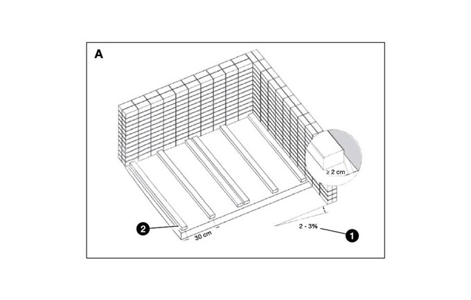 - Komposittrall monteras på underlag med bra luftcirkulation och god avrinning, minst 2-3 % vinkel för att förhindra stillastående vatten.