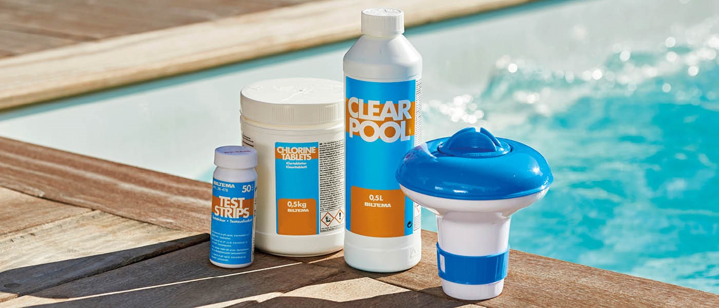 Read more about pool care and pool maintenance in four steps in our Pool Care Guide. When you buy Biltema’s Pool Care Starter Kit, the Pool Care Guide is included. All the products you need to care for your pool are listed in the guide and on Biltema’s website.