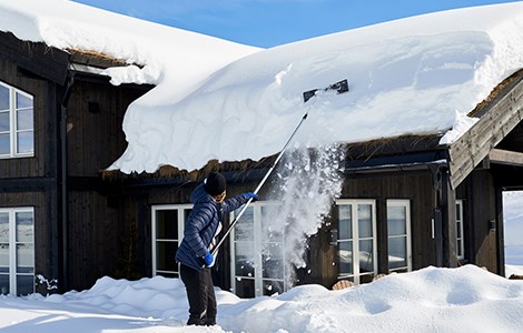 A snow rake, or roof rake, is a tool for clearing snow from roofs. Climbing on the roof and shovelling away the snow with a regular snow shovel be risky. A snow rake is therefore a better option because it is equipped with a transverse blade connected to a long shaft. This lets you stand under the roof and extend the snow rake to safely clear the snow. By also using a telescopic shaft, the length can be adjusted so you can also reach very high roofs.
