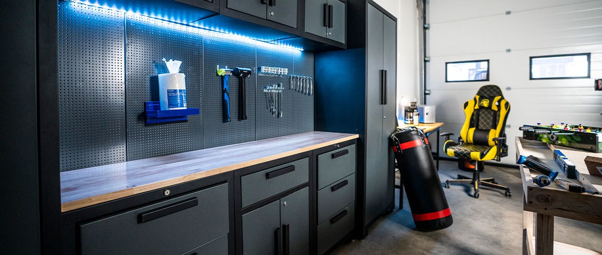 With garage systems from Biltema, you can furnish your garage to suit your needs. Wall cabinets, tool drawers and tool hangers are just some of the useful products we stock.