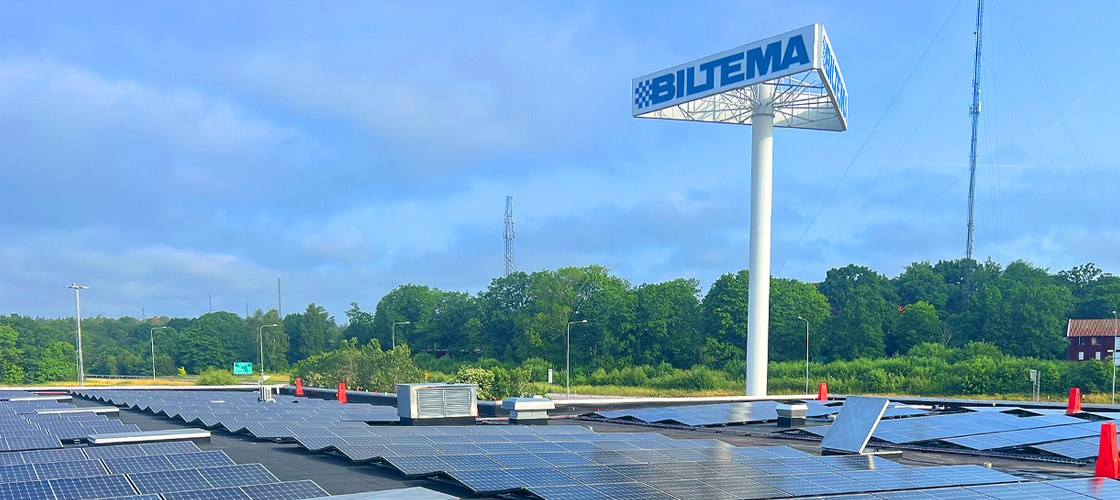 Biltema’s project to install solar cells on warehouses and retail stores is well underway. The goal is to install 1 million square meters of solar cells. Currently, 30 stores are already equipped and connected. Each week, an additional 4-5 stores and warehouses are installed.
