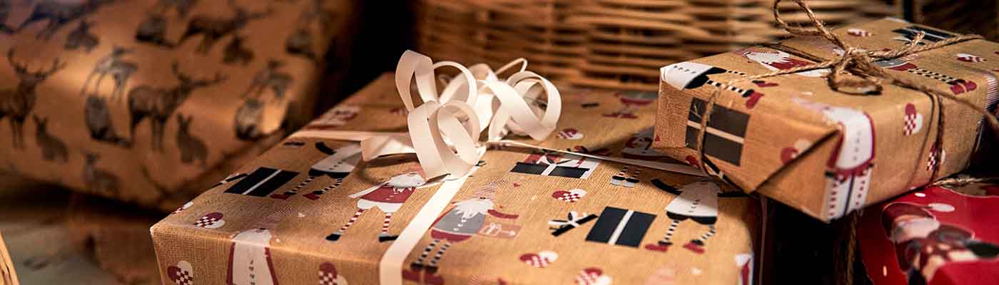 Se vårt sortiment kring presentpapper och snören för att ge dina julklappar den där lilla extra känslan.