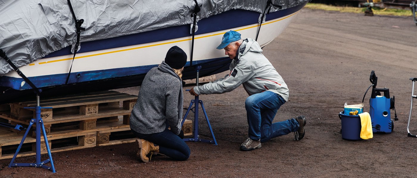 När båten står säkert på plats är det dags att se över båtens skick. Repor och andra skador som har uppkommit under säsongen kan slipas ner på hösten. Dessa kan stå och torka under vinterförvaringen och sedan lagas på våren innan båten sjösätts igen.