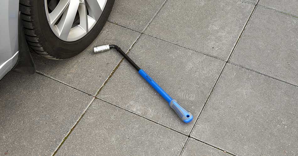 - Sänk ner bilen och efterdra hjulbultarna: När du har sänkt ner bilen drar du åt hjulbultarna. Tänk på att dra åt bultarna korsvis – det vill säga: dra åt bulten mitt emot den du just har dragit åt istället för bulten bredvid den. Använd en momentnyckel så att du inte drar åt bultarna för hårt. Kontrollera åtdragningsmomentet hos biltillverkaren och kom ihåg att efterdra hjulbultarna när du har kört cirka 50 km.