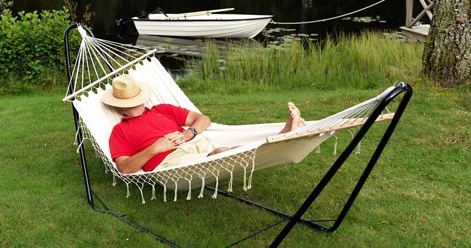 Oavsett om du har hängt upp hängmattan i ett träd eller i ett stativ, kan du enkelt ta bort själva hängmattan när vintern kommer så att den inte förstörs i det hårda vädret. Låter det som något för dig?