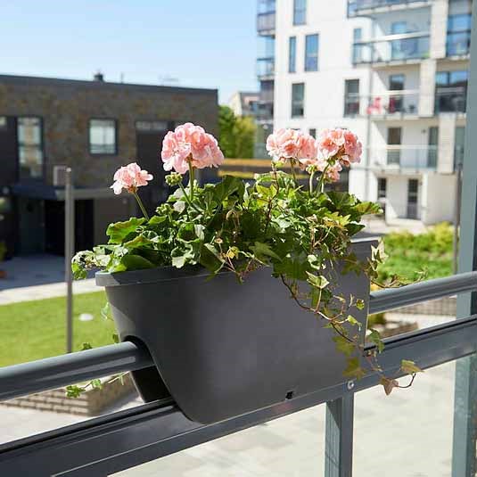 Dessutom kan du även köpa balkonglådor, som du kan plantera färgsprakande blommor i, och som lämnar plats åt möblerna på balkonggolvet.