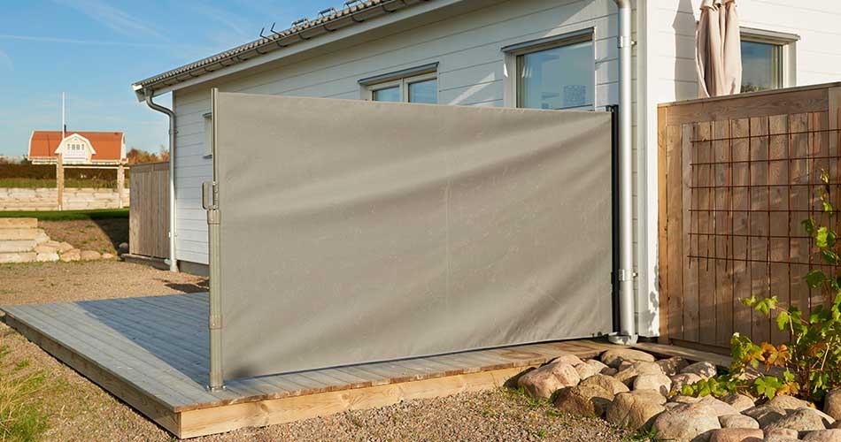 - Har din balkong ett läge som gör att vindriktningen ofta stör? Då kan du överväga att montera en sidomarkis. När du drar ut sidomarkisen fungerar den som en slags sköld som effektivt skyddar mot vinden. Det gör att du det blir trevligare att vistas på balkongen. Som en bonus fungerar sidomarkisen också som ett insynsskydd på balkongens sidor – antingen båda sidor eller den ena sidan, beroende på om du sätter upp en eller flera markiser. Om solen ofta lyser från en viss vinkel kan en sidomarkis också vara en effektiv lösning.