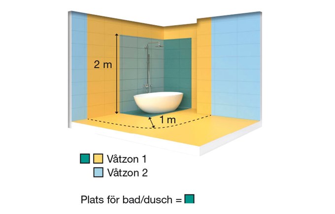 Ett våtrum delas in i 2 våtzoner.
