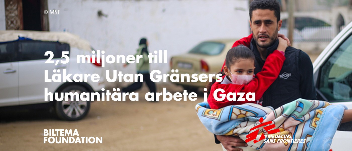 Läkare Utan Gränser är en internationell medicinsk humanitär organisation, verksam i över 70 länder. Organisationen arbetar oavbrutet med att tillhandahålla livräddande medicinsk vård och humanitärt stöd till människor oavsett etnicitet, religion eller politiska åsikter. Biltema Foundations donation kommer att bidra till att säkerställa att patienter i Gaza får den vård och stöd de så akut behöver.