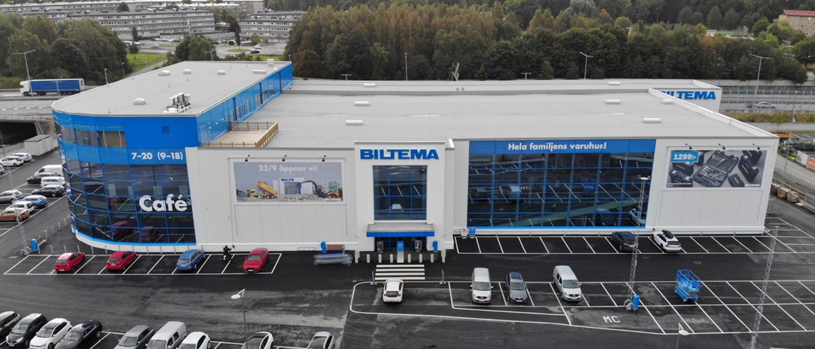 Varuhuset kan stoltsera med två våningar. De stora glaspartierna inbringar ett härligt ljusinsläpp och en luftig känsla. Kundvarvet erbjuder inspirerande exponeringsytor och kundterminaler placerade på strategisk utvalda platser som ger en enkel navigation i varuhuset. Cafédelen på nedre plan har inretts med soffor och växter för att skapa en mysig atmosfär när hungern faller på. Partille är vårt tredje varuhus i Göteborg vilket gör Biltema mer lättillgängligt för alla goa göteborgare. Återigen, välkomna!